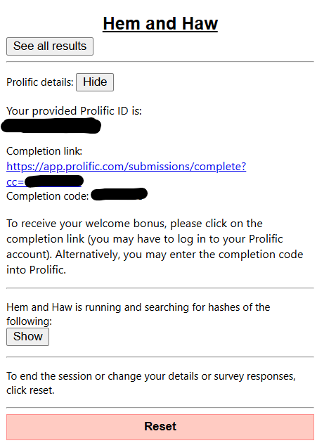 You have successfully set up Hem and Haw! Keep browsing with Hem and Haw running to earn weekly bonus rewards!