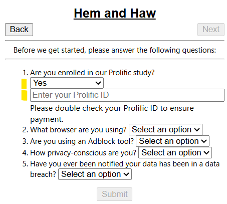 Welcome! Thank you for participating in our study to fight for internet privacy.